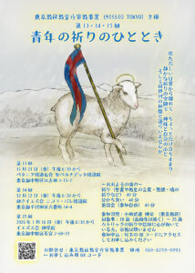 MISSIO TOKYO「青年の祈りのひととき」開催のお知らせ 開催日 ・第13回 2025年11月21日(金)午後6:30から ベタニア修道女会 聖ベルナデッタ修道院 東京都中野区江古田3-15-2 ・第14回 202 […]